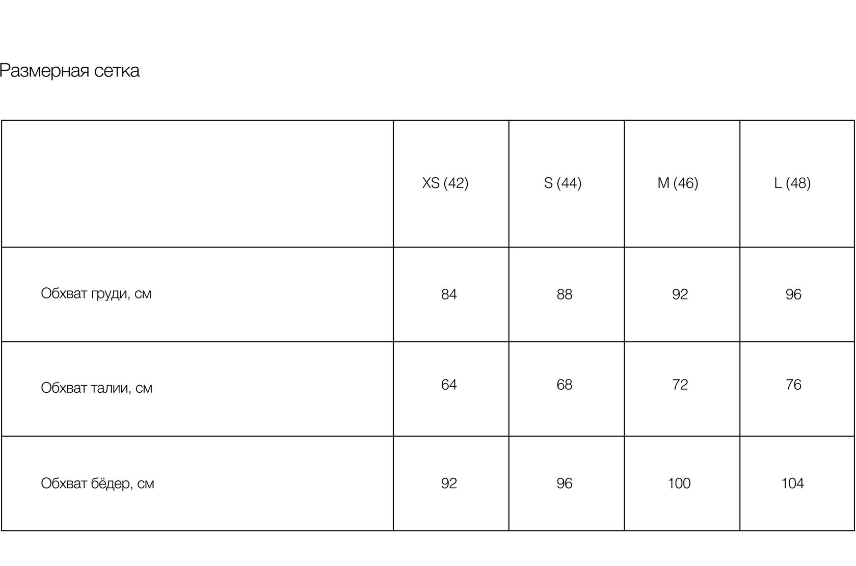 Рост модели 170 см, Обхват груди 90 см, Обхват талии 77 см, Обхват бедер 103 см,
