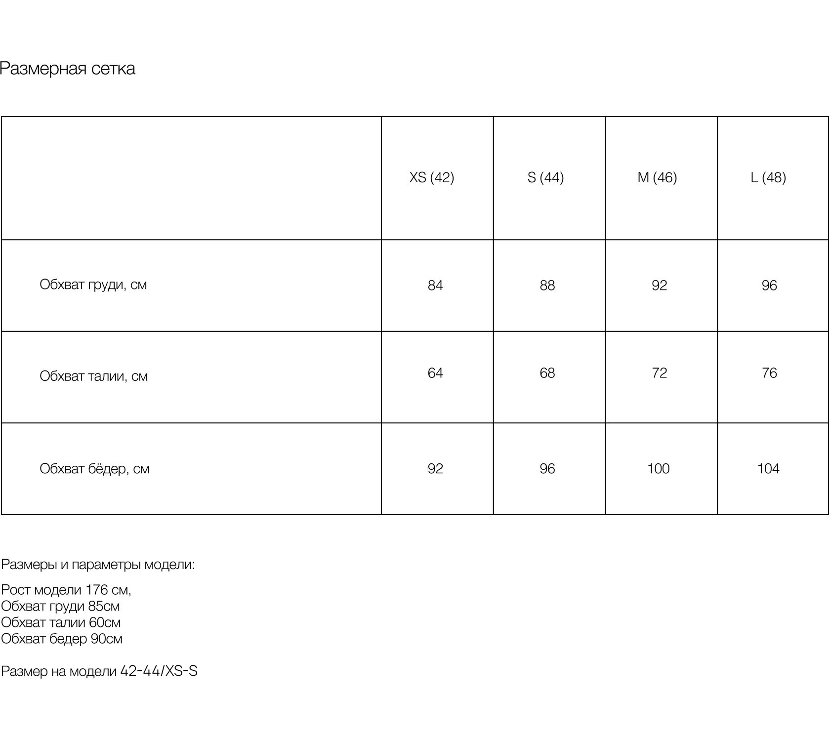 Таблица размеров